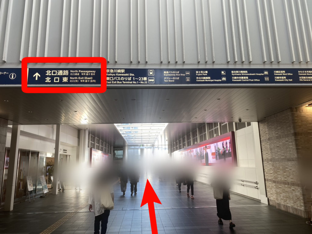 「北口東」の方向に向かって通路を直進します。